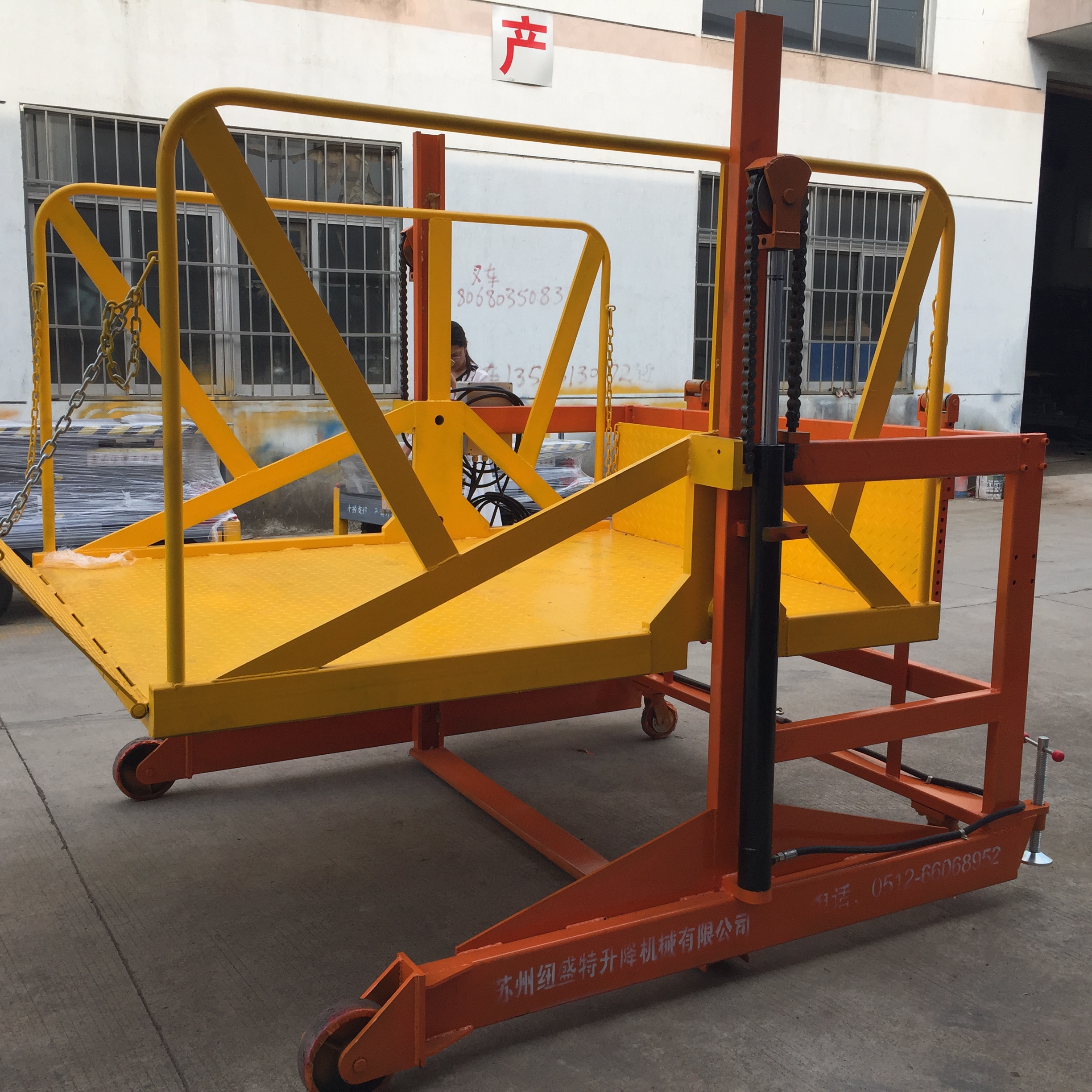 Nền tảng YiDongShi dent CheQiao (YiDongShi ZhuangXie hàng, nhờ vào công-te-nơ hóa hàng ZhuangXie nền tảng) là những hàng hóa và cộng tác với ChaChe sử dụng thiết bị phụ trợ ZhuangXie, có thể điều chỉnh độ cao dựa trên độ cao của những toa xe hơi đầu tiên, ChaChe có thể trực tiếp thông qua Ben ZhuangXie này của hàng hóa bên trong các toa xe của các thiết bị dễ nhân số lượng lớn, bài tập về nhà, nhờ chúng đang trong tư thế gợi những tín hiệu thì ZhuangXie rất nhanh chóng đạt được của hàng hóa. Nó cho phép các doanh nghiệp giảm lượng Lao động, làm việc hiệu quả hơn và đạt được hiệu quả kinh tế cao hơn. Bàn được trang bị với một tấm lưới hình Kim cương đặc biệt có một cường độ đáng tin cậy, có thể đảm bảo việc sử dụng lâu dài và không biến dạng. Kết cấu hình lưới hình Kim cương của nó đảm bảo đầy đủ tính chất chống trượt tốt, làm cho xe nâng nâng có khả năng Leo dốc và điều khiển tốt hơn. Vẫn có thể sử dụng bình thường, ngay cả khi trời mưa hay tuyết. Dây xích có thể điều chỉnh chiều dài có thể dễ dàng móc vào xe tải, làm cho cầu di động và xe tải luôn luôn gắn bó chặt chẽ với nhau. Bằng cách sử dụng một máy bơm bằng tay làm năng lượng, không cần phải kết nối với nguồn cung cấp năng lượng bên ngoài có thể dễ dàng để điều chỉnh độ cao của cầu. Các miếng đệm phanh được cấu hình để ngăn chặn việc thay đổi cầu trong quá trình tải và dỡ hàng.